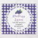 An elegant blackberry liqueur label featuring a soft blackberry design framed within a delicate lace-style border. The purple gingham background adds a rich, homemade touch perfect for bottled drinks. Ideal for sharing with friends, neighbors, or gifting during the holidays. Add your name and year for a clean, finished look. A charming way to present your homemade blackberry liqueur.
