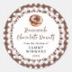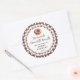 This fun and whimsical sticker features a chocolate doughnut on a white lace doily and brown gingham background. It is perfect for labelling your homemade goods. The text combines handwritten script and serif fonts for a stylish and modern look.