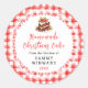 This fun and whimsical sticker features Christmas cake on a white lace doily and red gingham background. It is perfect for labelling your homemade goods. The text combines handwritten script and serif fonts for a stylish and modern look.