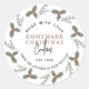 Watercolor cranberry wreath with scripted calligraphy for Christmas home treat labels with your name,