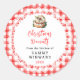 This fun and whimsical sticker features Christmas doughnuts on a white lace doily and red gingham background. It is perfect for labelling your homemade goods. The text combines handwritten script and serif fonts for a stylish and modern look.