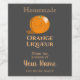 It says Homemade Orange Liqueur from the Kitchen of. It also says Keep Refrigerated. You can change any of the words, move, or delete anything. It's fully customisable.