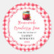 This fun and whimsical sticker features a jar of cranberry jam on a white lace doily and red gingham background. It is perfect for labelling your homemade goods. The text combines handwritten script and serif fonts for a stylish and modern look.