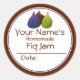 These personalised canning round stickers will fit on top of your glass jam, jelly, and preserves jar lids. They have an image of three figs, one purple, one brown, and one green. You can change the background circle colour if you want.