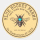Hand drawn honey bee with turquoise heart on yellow circle jar label