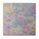 Homemade paper made with recycled paper and other items including paper pulp in pinks, purples, yellows, blues and greens. Unique texture shown in scanned handmade paper image.