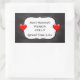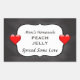 Trendy, rustic chalkboard kitchen canning label stickers- Background is rustic chalkboard look. In the centre is a curved, white emblem which reads 'Mum's Homemade Peach Jelly' in a mix of country style and modern, black letters. Add custom change to different food product if you like, or any text you wish. Below it reads 'Spread Some Love' in calligraphy style lettering. Simple red puffy look hearts decorate each side. Note: All images are printed. Not actual chalkboard surface. Country rustic style stickers for homemade food gifts, canning labels, baking stickers, bake sales, product branding, etc. Click Customise option to change text colours, size, and font styles.