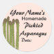 The canning stickers say, "Your Name's Homemade Pickled Asparagus." Add your name to the template to personalise. You can change or remove any of the words in the template.