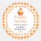 This fun and whimsical sticker features a pumpkin cupcake on a white lace doily and orange gingham background. It is perfect for labelling your homemade goods. The text combines handwritten script and serif fonts for a stylish and modern look.