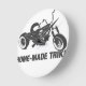 The clock did not take as long to arrive as I thought it might and was extremely well packaged. I didn't do the measurements so I didn't realize it is a little smaller than the average clock but that does not matter (just make sure you check if that's important to you).It is really nifty! It seems very solid and well made not flimsy at all. It has been going well and has kept good time in its few weeks on my wall. Nice product. Gets noticed too! Nicer in real life than the picture but true to the picture