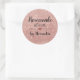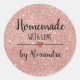 Homemade with love blush pink glitter script classic round sticker