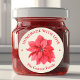 Christmas holiday personalised round stickers featuring an elegant red poinsettia with your name and greeting in chic lettering on ivory stripes. All text, fonts, font colours can be modified, just click the "customise further" link.