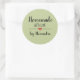 Modern "homemade with love" sticker with a black font on a green background embellished by a cute red heart. Customise text.