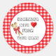 This country style sticker is perfect for labelling your homemade gifts. Use it on gift bags, gift tins and more. The design features a red gingham background with white circle shape in the centre. The text is Homemade with love. There are also two mixing spoons with a red bow. This sticker is perfect for baked goods and more.
