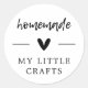 The text says "homemade" in modern calligraphy and then there is a heart in the middle, and at the bottom your can have your business name printed. Use this sticker for your diy crafts, handmade gifts, snail mails, and business packaging for makers, artists, etc.