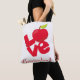 . Using a white background, this design displays the word "Love" in charming and large calligraphy. Underneath the design is the word "Homeschool". This tote bag comes in two different styles, shoulder tote and across the body. Place your order today!