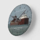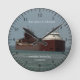 The clock did not take as long to arrive as I thought it might and was extremely well packaged. I didn't do the measurements so I didn't realize it is a little smaller than the average clock but that does not matter (just make sure you check if that's important to you).It is really nifty! It seems very solid and well made not flimsy at all. It has been going well and has kept good time in its few weeks on my wall. Nice product. Gets noticed too! Nicer in real life than the picture but true to the picture