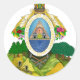 The coat of arms of Honduras features the text "Republic of Honduras free sovereign and independent", topped with a cornucopia, a quiver of arrows, flanked by deciduous trees and limestone cliffs, with a Masonic eye at the centre.