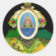 The coat of arms of Honduras features the text "Republic of Honduras free sovereign and independent", topped with a cornucopia, a quiver of arrows, flanked by deciduous trees and limestone cliffs, with a Masonic eye at the centre.