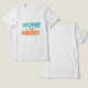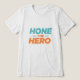 Hone the Hero" is a dynamic t-shirt design with the phrase boldly displayed in a rainbow of colours. The bold, eye-catching font adds to the overall impact of the design.