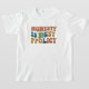 The t-shirt feels and looks great quality, a good thick cotton. It will be a little big for my son, but that means he will be able to wear it and not out grow it too soon. The print was as described on the order when personalised. True size, shape and colour T-shirt- thanks.