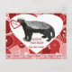 What's better than this Happy Valentine's Day Honey Badger postcard set to wish a bunch of family and friends a Happy Valentine's Day?? This little cupid carries a valentine wish instead of a snake! The postcard sports traditional valentine colours of pink, red and white as well as a bunch of hearts. Don't forget the matching honey badger postage stamps too!