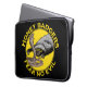 Honey badgers fear no evil quote laptop sleeve with a nasty badass honey badger verses a cobra snake. Honey badgers really are the toughest animals on the planet. Honey badgers will take on lions, snakes and anything else that gets in their way. This honey badger and cobra snake yellow and back laptop sleeve design is the perfect gift for animal lovers and those that admire these courageous animals. It celebrates the fact that 'Honey badgers fear no evil' original artwork by artist Catherine Sweetman