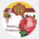 Colourful ,elegant floral apiary design with roses and red wax seal with backside of an ancient money from Mileto 415-394 a.C. Classy design easily customisable for your business.