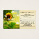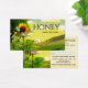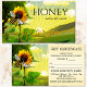 Business card size gift certificate featuring an artistic illustration with a sunflower and honey bee in a fresh green landscape scene.