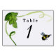 Art features a watercolor of a green vine with a leaf. A picture of a buzzing honey bee is above the table number. Words note "Table 1" but can be personalised with your own words and messages. Create your own unique one-of-a-kind table card design by customising these template garden bugs insects table cards for your wedding, reception, or other personal event information.