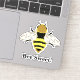 This contoured vinyl sticker features a graphic honey bee in black and yellow along with a separate template text sticker that is easy to personalise.