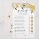 A cute summer baby shower game featuring a simple plain white background, featuring yellow and gold glitter agate crystal edges, a honeycomb background, honey drips, beehive, white watercolor florals, bees, and a "guess who, mummy or daddy" template that is easy to personalise.