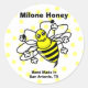 A cute cartoon bee sits in the centre of this fun sticker. The background is white with yellow polkadots. This sticker fits perfectly on top of a jar.