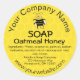 These customisable round vinyl stickers for your soap have a cute cartoon honeybee on a honeycomb background.
