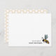 Honey bee personalised note cards with your name next to a flying bee and, on the back, a honeycomb pattern in honey yellow.