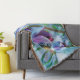 A quality printed throw has its advantages. This is a much finer weave throw than its loopier cousins, and though lighter, it is worth the investment for custom room accessorizing. The back is much prettier than the typical brown, and the fringe on the long sides very vivid, the selvage nicely done. Before photographing, I washed the throw in cold water, delicate, with a thicker woven throw the same size. On tumble dry low, this throw was dry in half the time as the other. This is a very practical quality if you use throws for furniture covers or to wrap up in frequently. The sleekness of the fabric makes it a great layer for accenting or protecting without the feeling of sitting on too much stuff. Perfect for napping or when you feel a light chill coming on. The color printing is beautiful and on this fabric, matched the design and color of my Photoshop image. This is an advantage for blending room fabrics and colors. The fringe on the short sides prints the colors from the design image and therefore varies from the side fringe. I streaked a white fractal line through the plaid pattern to give the illusion of weaving. This printed as crisp as an illusory thread, and put some white in the short side fringe, showing another advantage of print vs loomed- for artistic purposes, line lines, detail, and color integrity can be planned and preserved. My loomed throws have color limitations and more of a needlepoint texture. Print throws reproduce an exact image. The throw felt a little stiff straight out of the package, but this went away in the first delicate wash. Of course I searched the wash water for ink or bleeding and there was none.
