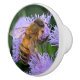 This animal ceramic door knob features a gold and black honey bee pollinating the pale purple violet flowers of an ageratum plant.