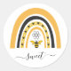 Sweet honey bee rainbow stickers. Perfect for honey jar stickers, sweets stickers and other baked goods. Cute yellow gold and black.