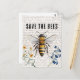 Big illustration of a bee and some yellow and blue flowers on antique handwritten script background with big message "Save the bees" perfect for bee and nature lover, beekeeper. World Bee Day is observed on 20 May each year to draw attention to the essential role bees and other pollinators play in keeping people and the planet healthy.
