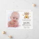Teddy bear birth announcements with a sweet little bear hugging and licking a honeycomb hive surrounded by bumble bees. White and yellow polka dot background. The new mummy and daddy to bee will love to announce the arrival of their baby boy and will bearly contain their joy to do so! Add up to 5 pictures to these announcements because it's too hard to choose only one photo of your little honey bear. Artwork © Chrissy H. Studios, LLC. All rights reserved.