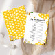 Bee theme features a yellow bee layout , scramble word card for baby shower The words on this card are all related to babies and have been scrambled. The guests will compete to see who can unscramble them all first! ANSWER KEY: 1. LULLABY ; 2. milk 3. MOBILE 4. pacifier The fifth item is a diaper rocking chair. 7. nursery 8. baby monitor; 9. swaddle 10. WIPES. 11. BLANKET 12. stroller. 13. SWADDLE. 14. teether. 15. CRIB.