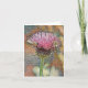 A beautiful small greeting card with mosaic style artwork featuring 2 honey bee workers on plume thistle.