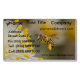 Bumble Bee Business card magnets . The Bumble Bee magnet all covered in pollen from pollination of the flowers. flying towards a white flower bud with yellow pollen on the end. this is a the yellow and black honey bee. With a grey faded back ground.