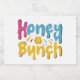 This t-shirt design spells sweetness with "Honey Bunch" dripping in multicolored charm. Each letter is adorned with playful swirls and drips, resembling gooey honey. The colour palette is a burst of sunshine, featuring bright and cheerful hues like sunshine yellow, bubblegum pink, and sky blue. It's a perfect choice for anyone who wants to spread a touch of sweetness and celebrate the special people in their lives.