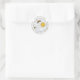 Personalise with your name and product description. Central image of a honeybee hovering above a pure white cosmos flower in this editable supplementary honey label. Please check with your local regulations for product labelling if you intend to sell your honey.