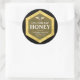 Striking black and honey colour honey jar label. The design features a vintage hand drawing of a honey bee plus a honeycomb shape. This is a template ready for you to add your apiary details and jar weight. It really gives your honey the finishing touch for gifts or sales at the farm gate or farmers market.