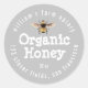 Modern and simple honey jar labels with the text organic honey and your business name and website or address in off-black stylish script typography on a grey background, features a vintage bee image. Simply add your apiary name, the product name and the weight to the label. Exclusively designed for beekeepers by Happy Dolphin Studio. If you need any help or matching products, please contact us at happydolphinstudio@outlook.com.