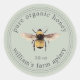 Rustic and simple honey jar labels with a vintage honeybee print and the text pure raw honey and your business name in modern typography on a pastel green background. Simply add your apiary name, the product name and the weight to the label. Exclusively designed for beekeepers by Happy Dolphin Studio. If you need any help or matching products, please contact us at happydolphinstudio@outlook.com.