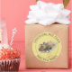 NewParkLane - Honey Jar Sticker Label, with a vintage image of a bumblebee, originally from an early 17th century Dutch painting by Johannes Bronkhorst, against a yellow background with a honeycomb pattern.