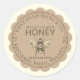 These pale yellow honey stickers feature a kraft coloured scallop with a central bee illustration.